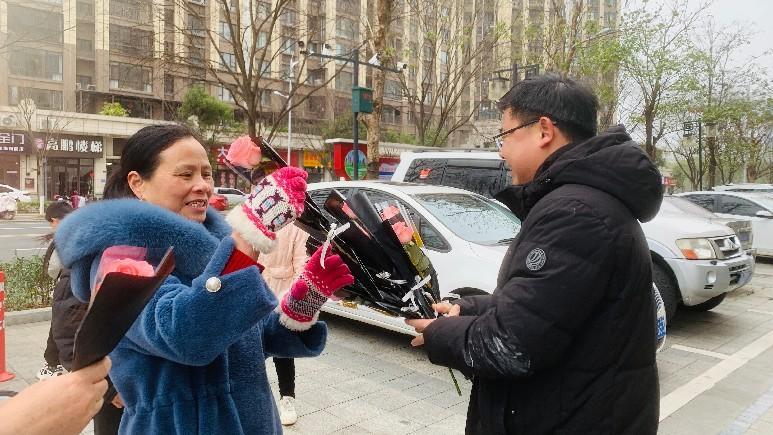 帝景豪園小區(qū)舉辦“寵愛(ài)女神”便民服務(wù)活動(dòng),給小區(qū)女性業(yè)主送鮮花、提供免費(fèi)沖洗地墊、免費(fèi)磨刀服務(wù)。