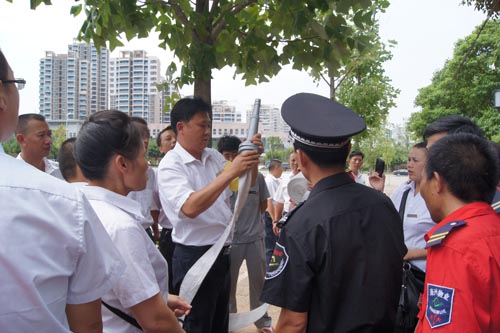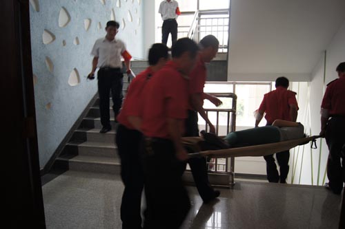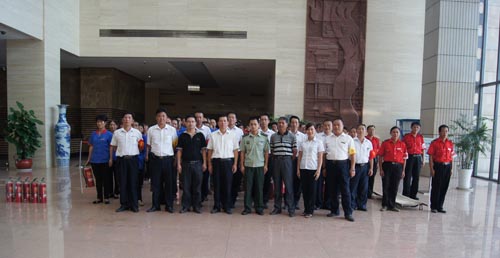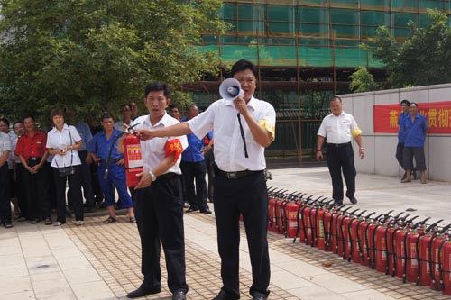 2013年7月22、27日,公司領(lǐng)導(dǎo)和各部門、各管理項目負(fù)責(zé)人及秩序維護(hù)班隊長、水電工約100余人參加了在贛州市歷史文化和城市建設(shè)博物館舉辦的消防安全演習(xí)。演習(xí)項目有模擬火災(zāi)現(xiàn)場中的緊急疏散、火災(zāi)逃生、醫(yī)療救護(hù)等項目,并有專人指導(dǎo)大家正確使用滅火器、室外消防栓的連接和使用等。上午9時,在火災(zāi)現(xiàn)場總指揮張衛(wèi)東副總經(jīng)理的指揮下,秩序維護(hù)員發(fā)出火警報警信號。各演練工作組在聽到指令后,迅速到位,參加演練的義務(wù)消防員和工作人員全部佩戴消防演習(xí)標(biāo)識,在最短的時間內(nèi),進(jìn)入展示廳、樓梯間及安全出口處,疏散組、救護(hù)組、滅火組通過口令加手勢,指揮員工從指定路線進(jìn)行有秩序地疏散,將現(xiàn)場所有人員,快捷有序地疏散到安全地帶。扮演群眾演員的公司管理人員在疏散組的指揮下從起火的樓層中手捂口鼻,俯身逃生;救護(hù)組成員抬著擔(dān)架上的受傷人員迅速從火災(zāi)現(xiàn)場撤離;滅火組成員手提滅火器迅速沖往起火點,消防演練按照預(yù)定的方案,有序、緊張地進(jìn)行。這一切,雖然都是模擬火災(zāi)中可能發(fā)生的現(xiàn)場,但是,參加人員認(rèn)真莊重的態(tài)度使演練更顯逼真。