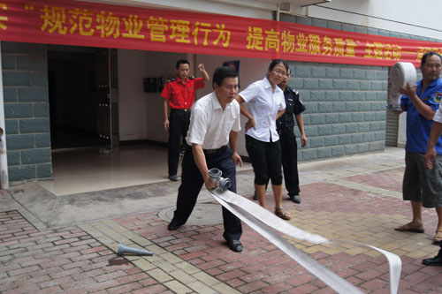 小區(qū)管理人員學(xué)習(xí)收卷水帶方法
