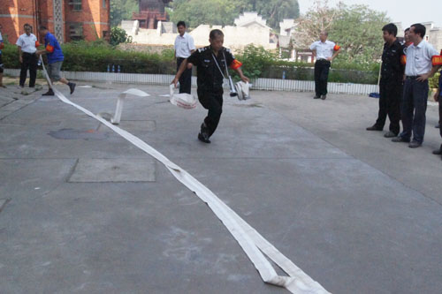 本次比賽項(xiàng)目共分三項(xiàng)內(nèi)容,第一項(xiàng):雙人二盤水帶連接滅火;第二項(xiàng):雙人20米干粉滅火器滅火;第三項(xiàng)消防知識(shí)問答題:。當(dāng)總裁判的號(hào)聲吹響,選手們立即進(jìn)入實(shí)戰(zhàn)狀態(tài),由城東片區(qū)選派的兩名選手配合默契,只看見一人將水帶拋出后拿住另一端迅速連接地面消防栓口,另一人腰插水槍,手拿另一盤水帶以迅雷不及掩耳之勢(shì)向前方奔跑,途中將二盤水帶在接口處旋轉(zhuǎn)卡接好,又迅速奔跑將二盤水帶拉直并將水槍接好,整體動(dòng)作干凈利落一氣呵氣好不瀟灑,當(dāng)裁判哨聲吹響,雙人二盤水帶連接滅火時(shí)間僅用時(shí)17秒,獲得了場(chǎng)上高聲喝彩聲。比賽進(jìn)入第二個(gè)項(xiàng)目,城南區(qū)組成的二人小組上場(chǎng),只見他們手提滅火器站在20米紅線外,當(dāng)哨聲吹響,選手們立即提著滅火器向著火處奔來,然后對(duì)著火焰的根部噴出白色的氣粉,火瞬間熄滅。當(dāng)五個(gè)片區(qū)的選手一一登場(chǎng)獻(xiàn)技后,比賽園滿結(jié)束,獲得此次比賽第一名的是城東項(xiàng)目部,獲得第二名的是城南項(xiàng)目部。