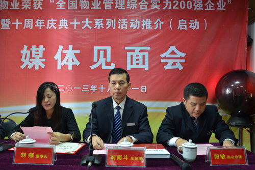 為慶祝燕興物業(yè)榮獲“物業(yè)管理綜合實力TOP200企業(yè)”暨十周年慶典十大系列活動,我公司于2013年10月31日9時30分在公司會議室召開媒體見面會。