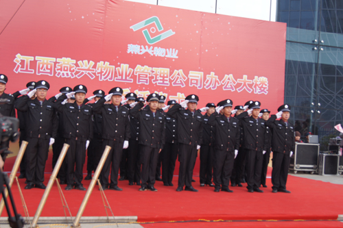 前來道喜的有物業(yè)企業(yè)的同行,有戰(zhàn)略合作伙伴,有各界的親朋好友等。在陣陣鑼鼓聲中喬遷儀式正式開始。首先映入眼簾的是燕興物業(yè)秩序維護(hù)員向嘉賓們展示的風(fēng)彩,整齊的隊列、驕健的步伐、高昂的斗志,引來掌聲一片。隨后,燕興物業(yè)總經(jīng)理劉南斗致答謝辭,向來自四面八方的嘉賓、朋友們表示衷心地感謝。最后,中國物業(yè)協(xié)會秘書長柴勇、燕興物業(yè)董事長劉燕、吉安商會會長劉振德等登臺一同為喬遷儀式剪彩。