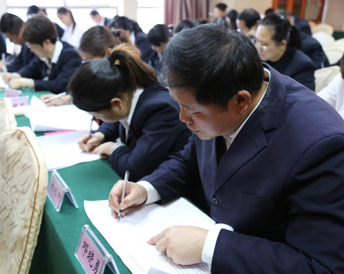 上圖:管理人員在認(rèn)真答題