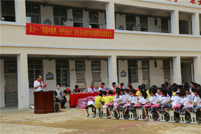 2018年5月28日,贛州市紅十字博愛基金會在贛州市南康區(qū)龍嶺鎮(zhèn)村頭小學舉行了慶六一“同圓中國夢,守護安全行”學生安全防護書包捐贈活動發(fā)放儀式,村頭小學的孩子們收到了來自燕興物業(yè)等愛心企業(yè)捐贈的安全防護書包。