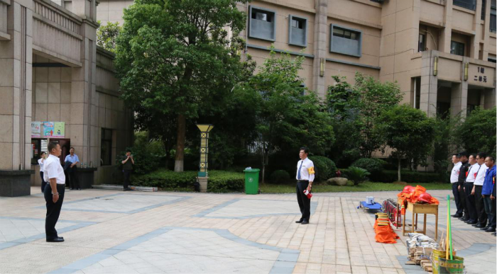 一是救火實(shí)戰(zhàn)演練:小區(qū)一棟二單元不慎起火,火勢(shì)不斷蔓延擴(kuò)大,巡邏安保發(fā)現(xiàn)情況,確認(rèn)火警,撥打“119”電話報(bào)警,隨后立即啟動(dòng)消防設(shè)施和滅火應(yīng)急疏散預(yù)案,展開自救。起火部位附近物業(yè)安保員工迅速向火點(diǎn)集結(jié),在1分鐘內(nèi)形成第一滅火力量,及時(shí)疏散現(xiàn)場(chǎng)人群,救護(hù)傷員。通過(guò)現(xiàn)場(chǎng)演練,最終完成整個(gè)滅火過(guò)程;
