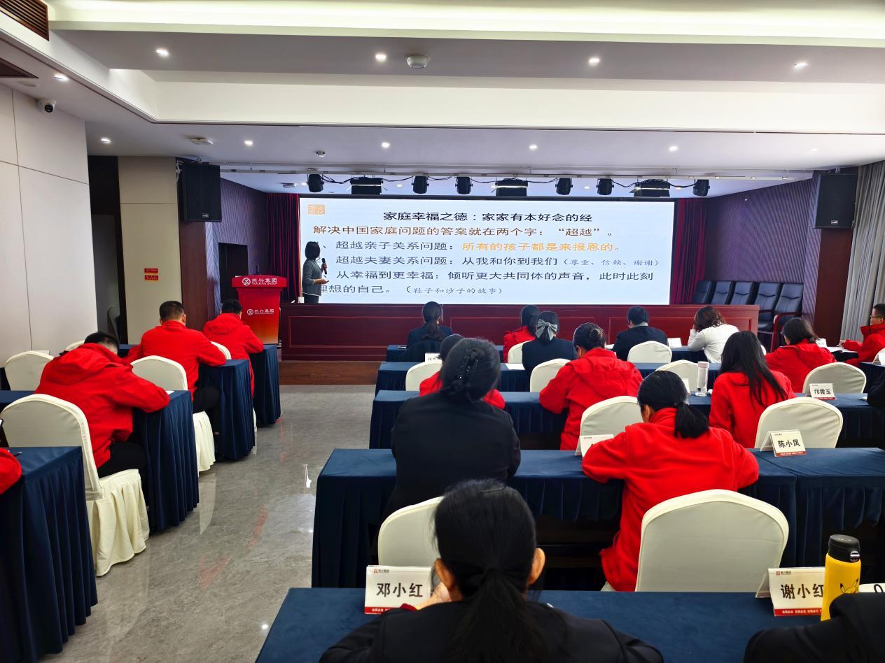 為深入貫徹落實(shí)習(xí)近平總書記關(guān)于注重家庭家教家風(fēng)建設(shè)重要論述,教育和引導(dǎo)廣大家庭樹立正確的價(jià)值觀、婚姻觀,普及家風(fēng)家教知識,提高家庭幸福的質(zhì)量,12月5日下午,燕興物業(yè)婦聯(lián)舉辦《愛與陪伴》讀書分享會,集團(tuán)黨委書記、董事長劉燕、婦聯(lián)主席徐桂香及公司中層以上管理干部約50名員工參加了學(xué)習(xí)。