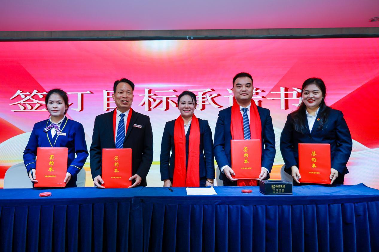 會(huì)上,集團(tuán)董事長劉燕與集團(tuán)市場拓展部、各子公司、分公司簽訂2025年經(jīng)營目標(biāo)承諾書。承諾書的簽訂,既是完成各項(xiàng)經(jīng)營目標(biāo)的軍令狀,也是自我加壓、攀登超越的奮進(jìn)宣言,詮釋著一份責(zé)任、一種擔(dān)當(dāng)。集團(tuán)各部門、子公司、分公司將聚焦經(jīng)營,將考核目標(biāo)轉(zhuǎn)化為行動(dòng)計(jì)劃,逐級(jí)分解,有力有序、保質(zhì)保量完成全年各項(xiàng)工作任務(wù)。