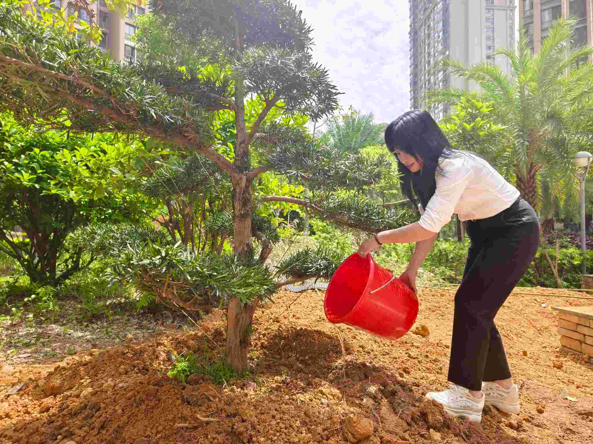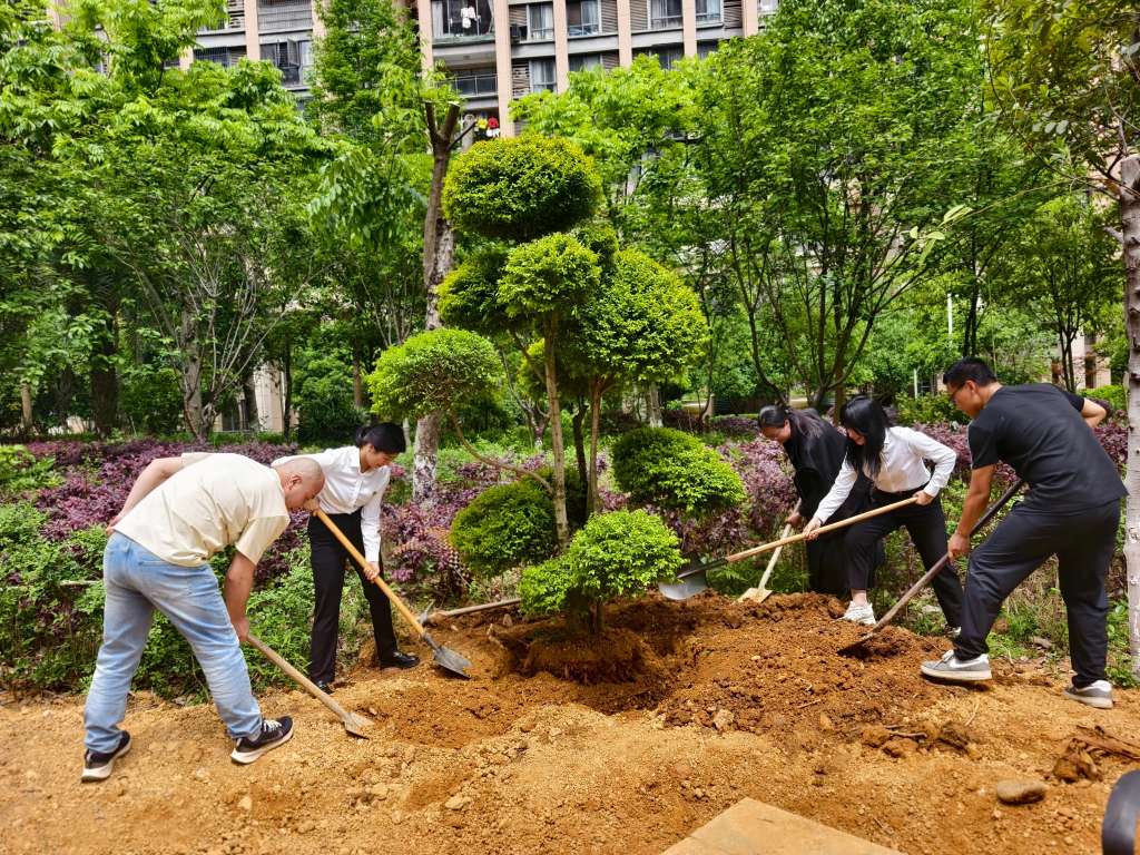 在園區(qū)的沃土上,正用鐵鍬與汗水譜寫一曲春天的交響。栽下一棵造型金葉女貞樹,埋進(jìn)對(duì)物業(yè)服務(wù)初心的堅(jiān)守;扶正一棵造型羅漢松樹,托起對(duì)生態(tài)文明的承諾。濕潤(rùn)的泥土裹著青草香,在交錯(cuò)的掌紋間傳遞著生命的溫度。我們將根系深埋,用服務(wù)作養(yǎng)料,以愛心化春雨。