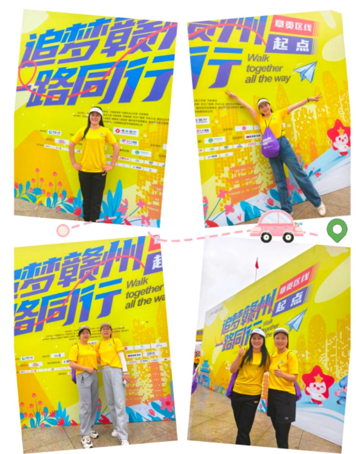 一路上,員工們相互鼓勵(lì)、相互支持。在章貢區(qū)線路,大家沿著章江南岸健步道前行,欣賞著章江水面倒映的兩岸綠柳,感受著微風(fēng)拂面的愜意;行至軍門樓廣場,在四賢坊的飛檐斗拱下,大家駐足感受宋城遺韻;在福壽溝博物館內(nèi),千年排水智慧讓大家驚嘆不已;來到贛坊1969文創(chuàng)園,工業(yè)風(fēng)墻繪又激發(fā)了大家的拍照熱情。