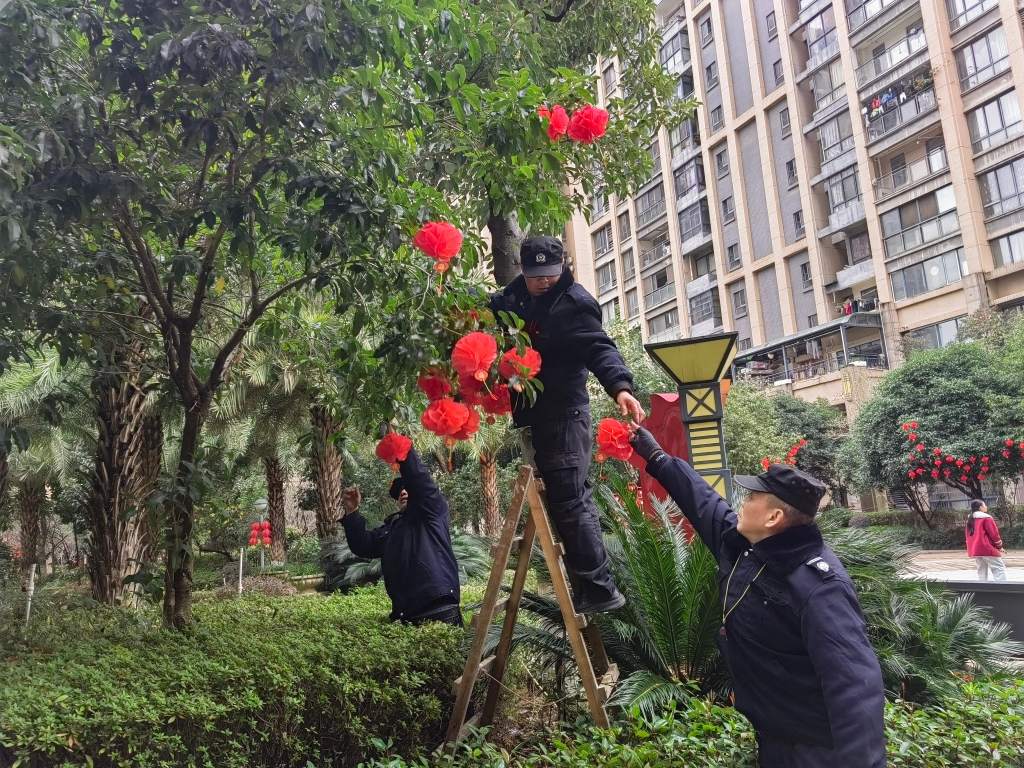 歲序更替,春歸有期,馬年新春的腳步悄然臨近。為讓小區(qū)處處洋溢濃厚年味,物業(yè)服務(wù)中心精心謀劃、匠心布置,全力打造有溫度、有氛圍的新春家園。工作人員穿梭在小區(qū)東、西大門、主次干道、休閑 廣場、單元門口等各個(gè)地方,將紅彤彤的燈籠、色彩鮮艷的彩旗依次懸掛,在綠化帶、休閑區(qū)點(diǎn)綴造型精致的馬年春節(jié)主題景觀小品,一筆一畫勾勒年味,一景一物傳遞溫情。